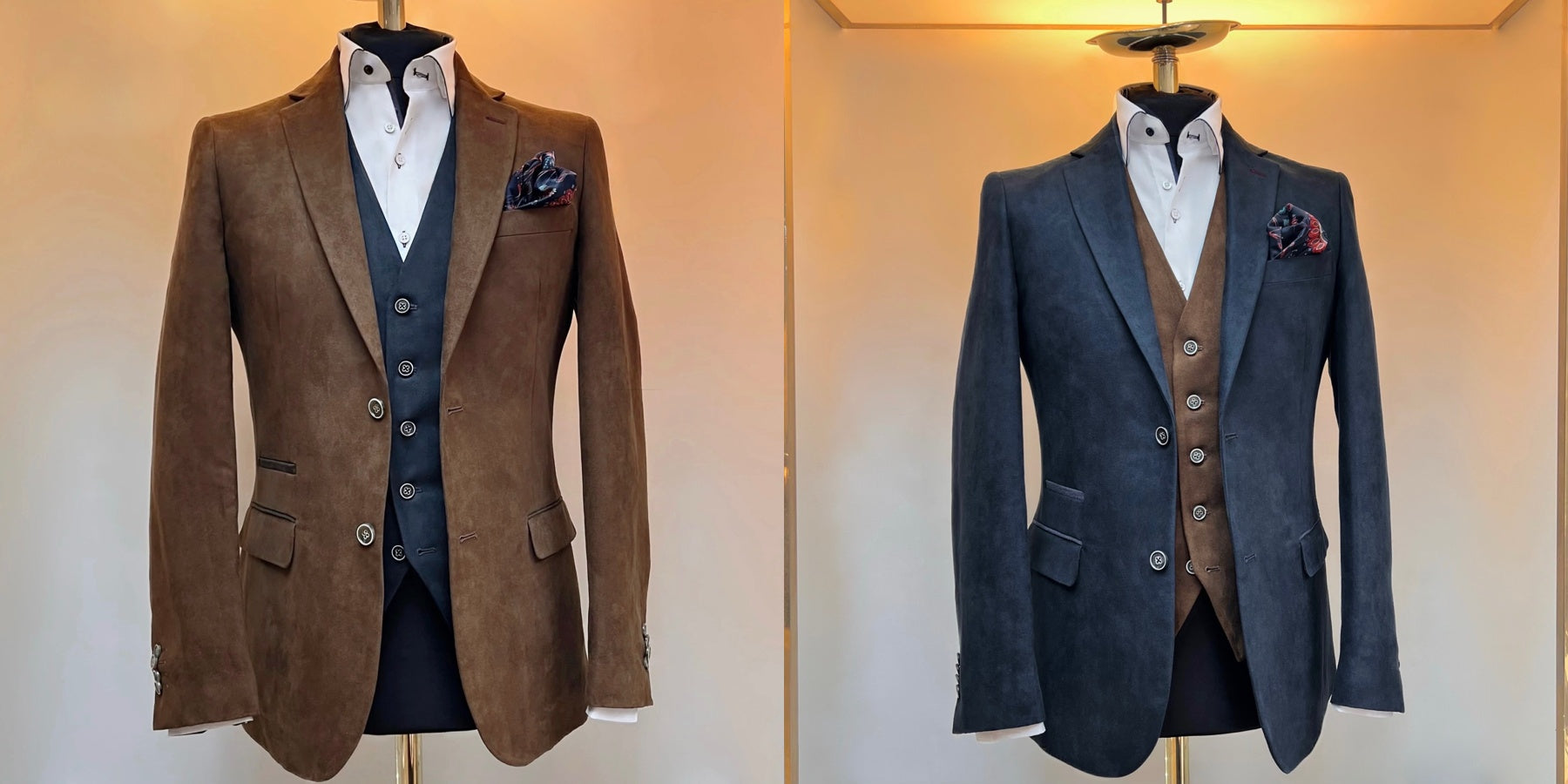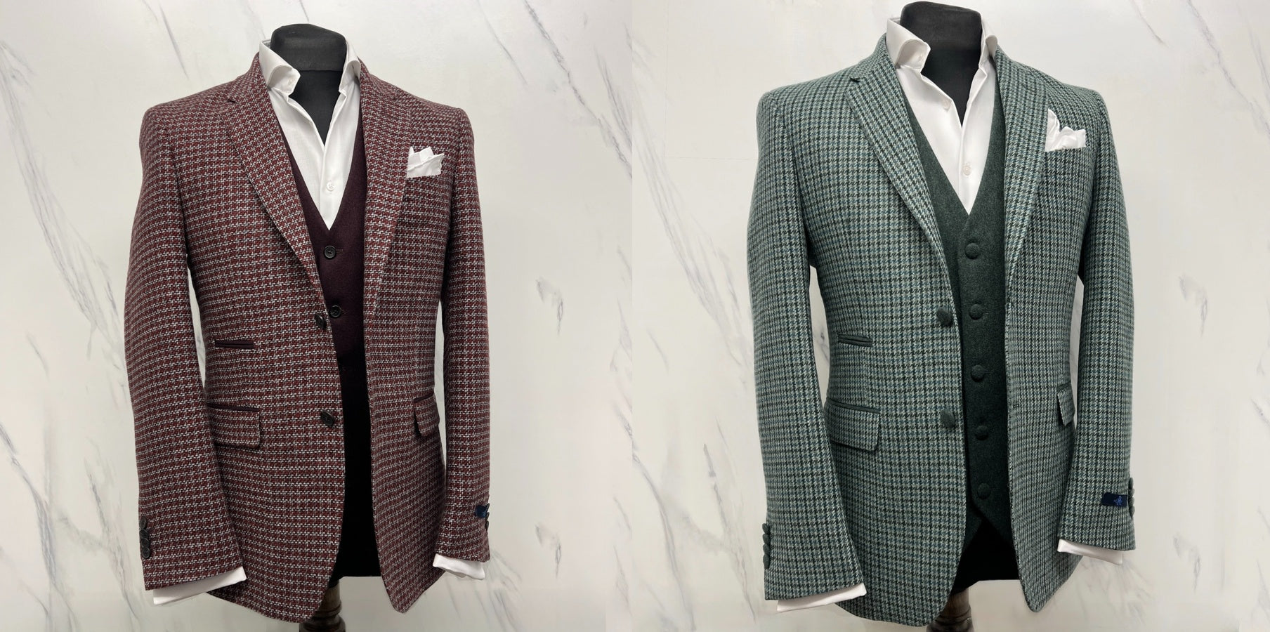 Grey Houndstooth Blazer with Contrast Waistcoat